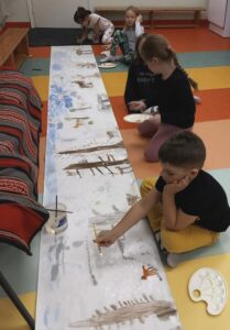 Lepatriinu rühmas uuriti, milliseid jälgi jätavad loomad lumele. Iga laps valis looma, keda õlipastellpliiatsitega ühispildile joonistada, ja lume kujutamiseks võeti guaššvärvid. Pakaselisel talveajal ei unustatud ka linde õues, kelle toimetamisi igapäevaselt jälgitakse. Täname lapsevanemaid, et lindudele on head-paremat toiduks pakkuda!